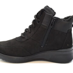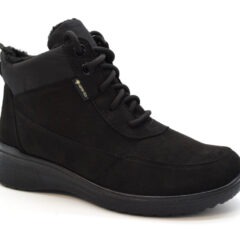 Questo stivaletto alla caviglia, realizzato con un mix di materiali di alta qualità, è particolarmente leggero. La calda fodera interna mantiene i piedi comodi e caldi. Grazie alla sua struttura a pori estremamente fini, la membrana impermeabile e traspirante in Gore-Tex nella fodera interna crea un clima piacevole per il piede, indipendentemente dalle condizioni atmosferiche. La cerniera laterale consente una calzata rapida e mantiene la scarpa perfettamente al piede. La calzata personalizzata è ulteriormente supportata da lacci regolabili individualmente. Il plantare rimovibile può essere rimosso in pochi semplici passaggi e sostituito con le proprie solette. La suola a zeppa robusta e antiscivolo garantisce un’ottima presa. Con questi stivaletti non esiste il maltempo!