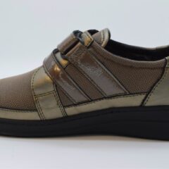 Scarpa con due velcri Cinzia Soft estraibile con calzata ortho e possibilità di sostituire con il proprio plantare personalizzato. La tomaia è in pelle elasticizzata, adatta a piedi molto delicati e in sofferenza. Le parti lucide della scarpa completano il design della scarpa che non dà l’impressione di essere una scarpa sanitaria.