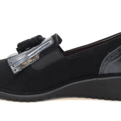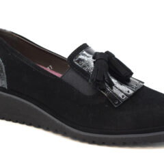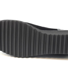 Il modello slip on di Ziviani è adatto alla donna che non vuole rinunciare al dislivello senza rinunciare alla comodità. Infatti la calzatura ha una zeppa di 4 cm in Vibram super leggera e antiscivolo. Il comodo modello con due elastici laterali permette di calzarla con facilità. La tomaia è in camoscio con inserti sulla frangia in pelle a contrasto. Ha un plantare in lattice 100% intercambiabile.