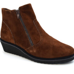 Lo stivaletto artigianale di Ziviani è realizzato in morbido camoscio trattato per la pioggia, ha una fodera in pelle ed un plantare in lattice naturale intercambiabile . La suola è in gomma super light con un dislivello di 4 cm antiscivolo permette una camminata sicura e dinamica. Adatto anche a piedi comodi ha due cerniere laterali per facilitarne la calzata.